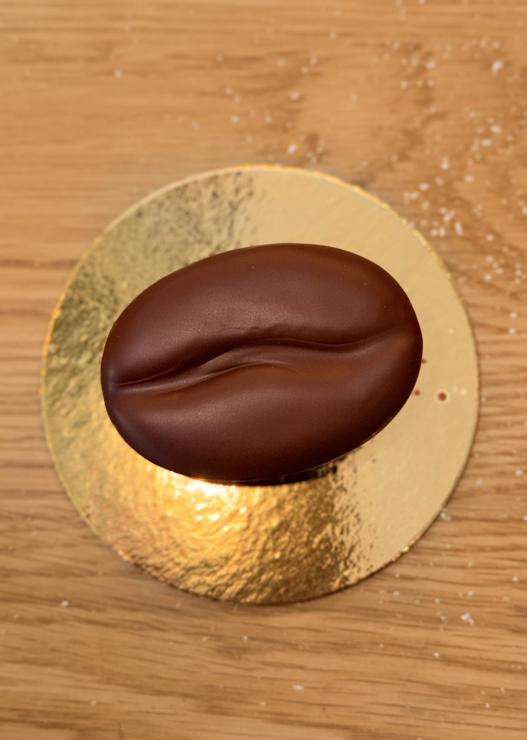 Täuschend echt geformt wie eine Kaffeebohne – doch im Inneren verbirgt sich ein edles Dessert: außen eine feine Schokoladenhülle, innen eine cremige Kaffeemousse im Tiramisu-Stil mit harmonischer Tiefe.